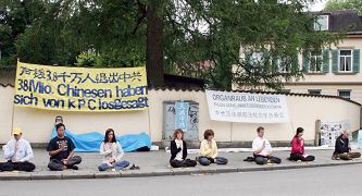 Les pratiquants de Falun Gong devant le Consulat à Munich en Allemagne