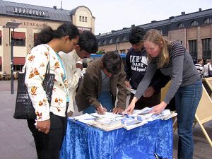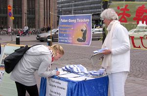 En apprenant que l'activité était liée à la Chine, une productrice radio a dit ne pas s'intéresser à la Chine, qu'elle n'y était jamais allée et que le communisme est vraiment mauvais et fait aussi de mauvaises choses dans d'autres pays. Lorsqu'un des pratiquants a évoqué la persécution du Falun Gong elle a dit "Pourquoi cette persécution continue-t-elle ? Quand cela va-t-il s'arrêter ? Pourquoi le PCC tient il quand même les Jeux Olympiques ? " Toutefois elle a ajouté qu'elle appréciait beaucoup la culture traditionnelle, mais que la culture actuelle en Chine en était par trop éloignée. Les pratiquants lui ont parlé de la Cie des Arts divins, une compagnie présentant des spectacles de culture chinoise sans trace d'éléments communistes, et qu'elle se produirait à nouveau en Finlande l'an prochain, et elle a manifesté son intérêt, finalement elle a signé le formulaire de pétition.