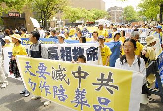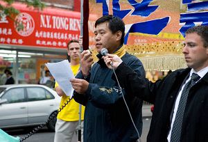 Au rassemblement, Dr Sen Yang, directeur de l’Association du Falun Dafa du centre des États-unis a dit que le comportement noble des pratiquants du Falun Gong a rayonné pendant les violentes agression à Flushing. « Quand attaqué, nos pratiquants n’ont pas répliqué et sont demeurés calmes et pacifiques. En revanche, la violence des voyous pro-communistes rendaient honteux tous les chinois. Est-ce que la violence peut couvrir la tyrannie du PCC et est-ce que ces agressions vont redonner la vie aux enfants victimes?