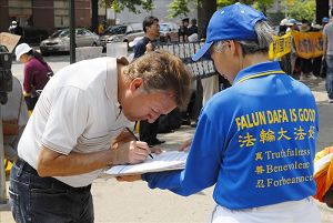 Signer une pétition en soutien au Falun Gong.