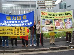 Le 5 juin 2008, les pratiquants de Falun Gong ont tenu un rassemblement devant le consulat chinois pour protester et pour condamner le PCC qui provoque la haine parmi les Chinois de l'étranger et pousse des fripouilles locales à attaquer les pratiquants de Falun Gong à Flushing, New York. Ils ont également exprimé leur soutien aux actions droites des bénévoles du Bureau mondial pour démissionner du PCC à Flushing. Les pratiquants de Falun Gong en Australie, tenant des banderoles sous la pluie, avaient l’air solennel devant le consulat chinois.