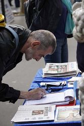Les gens signent la pétition demandant la fin de la persécution du Falun Gong par le PCC |