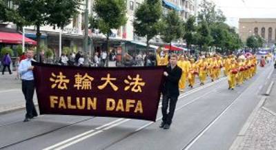 L'éclat de l’équipe des tambours à la taille et l’équipe de danse traditionnelle chinoise a attiré l’attention de nombreux passants. Après être passés par le quartier commercial bondé, la procession s'est dirigée au sud vers la vieille ville et le Consulat chinois à Gothenburg, pour s'achever à Gustaf Adolf Torget, à l’hôtel de ville. Sur le chemin de nombreux passants se sont joints au défilé exprimant leur soutien aux pratiquants de Falun Gong.