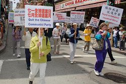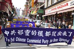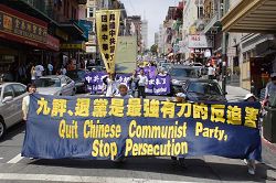 Le 13 juillet 2008, les gens de toutes les couches sociales se sont rassemblés dans le Chinatown de San Francisco pour un rassemblement et un défilé montrant leur soutien aux 40 millions de personnes qui ont démissionné du Parti communiste chinois (PCC) et de ses organismes affiliés. Les orateurs au rassemblement ont précisé que le PCC n'a jamais cessé sa persécution du peuple chinois et que démissionner du PCC est la façon la plus paisible et la plus efficace de mettre fin à la persécution.