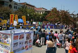 Il y avait une exposition photos. Les spectateurs ont été choqués par les images des pratiquants de Falun Gong qui ont subit les tortures brutales du PCC. Joost Van Buul et quatre de ses amis visitaient San Francisco depuis l'Europe. Joost a dit que cette persécution inhumaine devrait se terminer immédiatement. Il a également dit que le PCC n'a aucune raison de persécuter les pratiquants de Falun Gong parce que la liberté de croyance est un droit fondamental de l'homme. Tous les cinq ont signé une pétition réclamant la fin de la persécution.