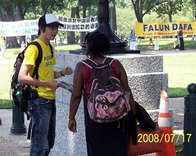 Le 17 juillet, l'Association de Falun Dafa, le Freedom House et les Amis du Falun Gong ont tenu un rassemblement anti-persécution au Parc 'Upper Senate'. Le thème du rassemblement a été « La fin de neuf ans de persécution contre le Falun Gong » .