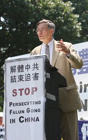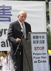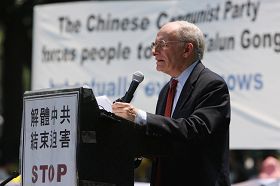 David Matas, un avocat célèbre des droits de l'homme du Canada et co-auteur du rapport des prélèvements d’organes par le PCC sur les pratiquants de Falun Gong de leur vivant, a également prononcé un discours au rassemblement. Il a énuméré les preuves de prélèvements d'organes et a réclamé la fin de ce crime contre l'humanité.