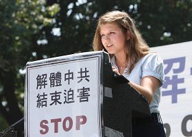 Elle a souligné que le PCC a même prolongé la persécution à New York, aux Etats-Unis, où des pratiquants de Falun Gong ont été attaqués à Flushing, New York. Elle a mentionné que dans une conversation téléphonique, Peng Keyu, le Consul général chinois à New York, a admis qu'il avait dirigé les attaques à Flushing. Elle a proposé que le gouvernement des États-Unis expulse les diplomates chinois qui organisent et dirigent des agressions contre des citoyens américains aux États-Unis.