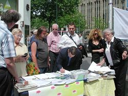 Après avoir appris la vérité, beaucoup de gens à Mülheim ont non seulement signé la pétition condamnant la persécution, mais ont aussi voulu mieux connaître le Falun Gong.