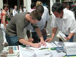 La population locale a exprimé son soutien à l'activité. Ils sont venus et ont signé la pétition condamnant la persécution du PCC l'un après l'autre. Ils se sont aussi montrés concernés par les récentes nouvelles de l'interruption des diffusions satellite de la télévision New Tang Dynasty (NTDTV) en Chine continentale par Eutelsat. La compagnie a prétendu que cela était dû à une anomalie technique alors qu'ils avaient cédé aux menaces et aux incitations du PCC. Ils ont espéré que la diffusion reprenne dès que possible et également appelé Eutelsat leur demandant de ne pas renoncer à leur conscience et leur dignité.