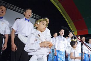 Six jeunes membres de la Divine Performing Arts de Tapei ont également dansé au rassemblement. Ils sont des pratiquants de Falun Gong et leur performance a reçu de chaleureux applaudissements des spectateurs. La directrice du groupe, Mme Cuiting a également performé deux danses, dédiées aux pratiquants persécutés et à leurs enfants.