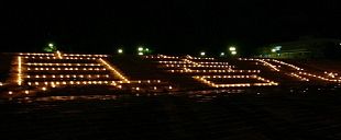 Après le coucher du soleil, les pratiquants ont allumé des chandelles et ont formé les trois caractères chinois : Authenticité. Bienveillance, Patience - - les principes du Falun Dafa.
