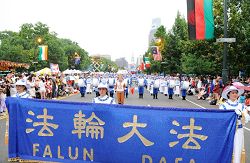 Le défilé annuel du Jour de l’indépendance de Philadelphie a eu lieu sur le Benjamin Franklin Parkway à 18h00 heures le 4 juillet. Le groupe du Falun Gong, ainsi que soixante-six autres groupes ont participé au défilé. C’était la septième fois que les pratiquants du Falun Gong étaient invités à se joindre à cet événement.