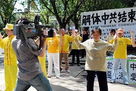 Cinq médias locaux ont fait un reportage sur le rassemblement y compris CTV et le Calgary Sun. CTV a fait un reportage sur madame Huang qui s’est récemment échappée de Chine continentale. Elle a parlé de la torture qu’elle a connue dans une prison chinoise.