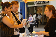 Un lycéen de Harz, dans la région montagneuse du nord de l'Allemagne a demandé : "est-ce vrai qu'on insère des tiges de bambou sous les ongles de personnes innocentes en Chine ?" Il était en voyage scolaire et s'est arrêté au stand avec trois autres étudiants. Il était profondément bouleversé par la simulation dans la cage, montrant une personne les mains percées par des tiges de bambou. "Quelle barbarie" a dit le jeune homme tremblant de dégoût. "C'est incroyable, je dois absolument signer la pétition."