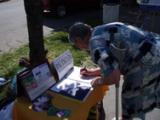 Un journaliste d'un journal local est venu au rassemblement. En écoutant l'histoire de la persécution, il a pris des photos des pratiquants en train de pratiquer les cinq séries d'exercices du Falun Gong.