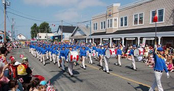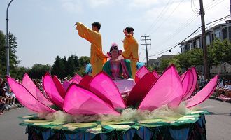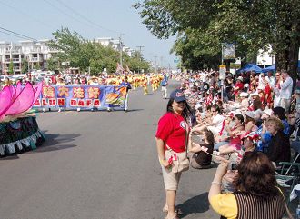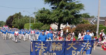 Le 1er juillet 2008, les pratiquants de Falun Gong de Vancouver ont été invités à participer au défilé pour célébrer le Jour du Canada et également le 63ème festival du saumon. Les pratiquants de Falun Gong participaient avec la fanfare de la Terre divine, une danse des fées célestes, l'équipe des tambours de ceinture et sur un char allégorique décoré. Les prestations ont reçu des applaudissements et des acclamations chaleureuses tout au long du parcours.