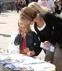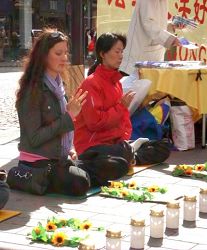 À 16:00 heure l'activité a commencé, et beaucoup de passants se sont arrêtés pour observer les pratiquants assis en silence solennel devant les portraits des pratiquants qui avaient été torturés à mort. Un homme qui n'avait jamais entendu parler du Falun Gong a été attiré par la scène solennelle. Quand il a entendu parler de la persécution cruelle en Chine il a dit, « Naturellement, ces personnes ( les pratiquants de Falun Gong ) décédés doivent être commémorées. » Un pratiquant lui a dit, « Les décédés que vous voyez ici ne sont que quelques- uns parmi bien d'autres. » Immédiatement, l'homme est allé à la table et a signé son nom sur le formulaire de la pétition réclamant la fin de la persécution contre le Falun Gong. Il a également demandé plus d'information.