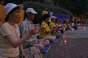 Dans la soirée du 7 août 2008, les pratiquants de Falun Gong dans la région métropolitaine de Washington ont tenu une veillée aux chandelles en commémoration des compagnons pratiquants qui sont morts en raison de la persécution et ils ont condamné le PCC pour sa persécution du Falun Gong sous couvert des Jeux Olympiques.