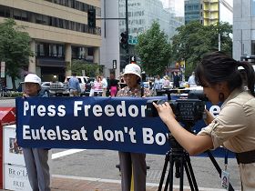 Les partisans de NTDTV ont continué la protestation paisible devant la succursale d'Eutelsat près de la Maison Blanche. Ils tenaient des banderoles et ont distribué des dépliants. Une chaîne de télévision locale a signalé la manifestation.