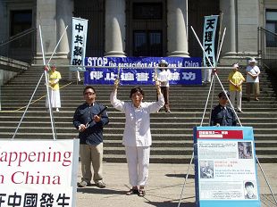 Le 20 juillet 2008, les pratiquants de Falun Gong à Vancouver, Canada, se sont rassemblés devant Art Hall dans le centre ville, pour demander la fin de la persécution. Plusieurs pratiquants de Chine continentale ont dénoncé la persécution inhumaine en partageant leurs expériences personnelles de persécution en Chine. Le rassemblement a été organisé pour que le monde entier soit davantage conscient de la situation des droits de l'homme en Chine et pour aider à mettre fin à la persécution.
