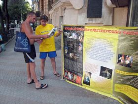 Les pratiquants de Falun Gong protestent contre la persécution par le PCC devant le Consulat chinois à Odessa. |