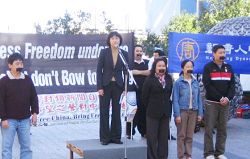 Parmi les orateurs au rassemblement il y avait : Yan Zhao, porte-parole de NTDTV, Linda Smith représentante de RSE, Andrew Bartlett, ancien sénateur démocrate du Queensland, Ashley Brown, Membre du conseil d’administration du Conseil Australie-Tibet, Ken Francis, représentant du Conseil civique nationale australien, Don Sinnamon, représentant des amis de ABC, et John Dowie représentant de l’Association du Falun Dafa du Queensland