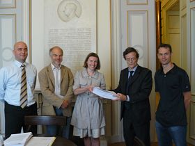 Le 14 août 2008, la CIPFG (Coalition pour Investiguer sur la Persécution de Falun Gong) a soumis la pétition mondiale pour faire cesser la persécution au bureau du Premier ministre belge, et pressé le gouvernement belge d’aider à mettre fin à la persécution du Falun Gong par le PCC (Parti communiste chinois). Matthias Slaats, représentant l’Association belge de Falun Dafa, et le sénateur belge, M. Patrick Vankrunkelsven ont été témoins de la soumission.