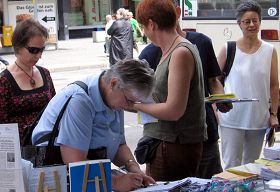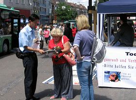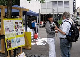 Beaucoup de gens ont vu les méthodes de simulation des tortures utilisées pour persécuter le Falun Gong. Ils ont lu l'information sur les posters et les imprimés de clarification des faits. Bouleversés par les atrocités commises ils ont signé une pétition de soutien aux efforts des pratiquants pour mettre fin à la persécution.