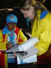Mme Li a continué : « Ici j’expose au public la persécution du PCC envers le Falun Gong, fait appel pour la fin de la persécution et le sauvetage de tous les pratiquants de Falun Gong illégalement détenus, incluant ma nièce en Chine. J’espère que les Chinois pourront jouir de la liberté de religion comme les gens dans les autres pays. Des dizaines de milliers de personnes ont participé à la journée mondiale de la jeunesse ici. La plupart d’entre eux veulent bien prendre des dépliants. Ils étaient troublés d’apprendre la persécution du PCC envers le Falun Gong et d’autres groupes religieux. »