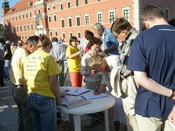 Durant les presque trois heures de la collecte de signatures, des centaines de personnes ont signé leurs noms pour demander la fin de la persécution du Falun Gong avant les Jeux Olympiques. De nombreux polonais ont posé des questions à propos de la persécution et pas mal de gens ont exprimé vouloir apprendre le Falun Gong.