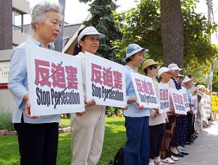 Les pratiquants de Falun Gong protestent contre la persécution du Falun Gong par le PCC en face du Consulat Chinois. |