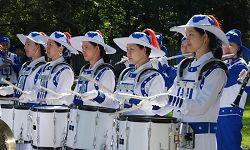 D'autres fanfares dans le défilé ont également été intéressées par cette fanfare chinoise, qui se compose de 60 pratiquants de Falun Gong. Ils ont exprimé leur respect quand ils ont appris que la Fanfare de la terre divine a été fondée il y a seulement un an mais a déjà joué dans plus de 50 défilés.