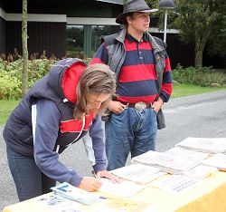 Surprenant leur conversation, Torbjorn, un pratiquant occidental, s'est approché pour clarifier leur confusion concernant la Chine et le Parti communiste chinois (PCC). Torbjorn a expliqué que le PCC n'est pas la Chine et que c'est le régime chinois qui a perpétré les atrocités contre le Falun Gong, incluant la collecte d'organes sur des pratiquants vivants. Malou était tellement sous le choc et indignée qu'elle s'est tournée vers le stand et a signé immédiatement la pétition. Elle a aussi condamné le régime pour sa persécution cruel des paisibles pratiquants de Falun Gong. Elle a signé, s'est retournée tendant le stylo à son mari, qui discutait avec un pratiquant, afin qu'il signe lui aussi.