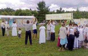 Du 8 au 18 août 2008, les pratiquants de Falun Gong de Krasnoyarsk et d'Abakan en Sibérie, Russie, ont participé au carnaval annuel de la communauté religieuse de Vissarionovtesev et présenté le Falun Gong et révélé la persécution en Chine aux habitants.