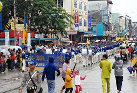 Les fanfares de la Terre divine de Malaisie et de Singapour ont été mises en place il y a peu de temps, et les pratiquants indonésiens ont invité les deux groupes à participer à cet événement. Lorsque la fanfare de la Terre divine est arrivée à l’événement, il y eu une averse soudaine, mais les pratiquants n’ont pas abandonné le défilé.