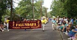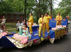 Le char du Falun Gong a été accueilli avec des applaudissements et acclamations tout le long de la route du défié. Les fêtards des deux côtés de la rue ont souri en regardant le char passé. De plus en plus de gens sont renseignés au sujet du Falun Gong et comprennent la brutalité de cette persécution insensée