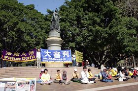 À l’extérieur de la cour, à Elisabeth Queens Square, les pratiquants de Falun Gong ont tenu d'immenses bannières attirant le regard, on pouvait y lire ‘’Jugement,’’ ‘’Falun Dafa est bon,’’ ‘’Traduire en justice Jiang Zemin, Luo Gan et le Bureau 610,’’ et ‘’Sauvegarder l’Indépendance du système Judiciaire australien—rejeter l’interférence du PCC.’’
