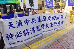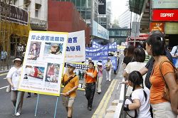 Afin de dénoncer ces attaques et le harcèlement de la part du gouvernement de Hong kong, qui a cédé au gouvernement chinois et s'est impliqué dans la persécution du Falun Gong, les pratiquants de Hong Kong ont organisé un défilé et un rassemblement sur le thème "Arrêter la violence du PCC et traduire les meurtriers en justice" le 20 septembre 2008. Le défilé était une manifestation pacifique contre les attaques par le gouvernement de Hong Kong et appelait les gens à maintenir la justice et à protester contre la violence.