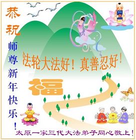 Trois générations d'une famille de pratiquants de Falun Dafa de la ville de Taiyuan dans la province du Shanxi, souhaitent une bonne année au Maître révéré !