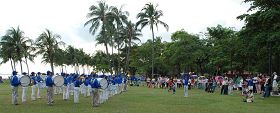 La Fanfare Tian Guo de Singapour, composée de plus de 60 pratiquants de Falun Gong de Singapour a joué pour le public du Parc de la Côte Est à la tombée de la nuit le 4 janvier 2009. Les membres de l'orchestre, vêtus de chemises bleues et de pantalons blancs étaient alignés dans un ordre impeccable. L'orchestre a attiré l'attention de la population locale et des touristes.