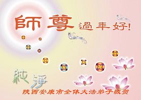 Tous les pratiquants de Falun Dafa dans les villes de Ankang, Hanzhong et Shangluo, province du Shaanxi, souhaitent une bonne année au Maître vénéré !