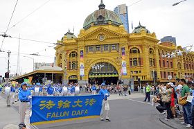 Samedi après midi, le 3 janvier 2009, un millier de pratiquants de Falun Gong d'Australie se sont rassemblés et ont défilé dans le centre de Melbourne dans le cadre de la Conférence annuelle de partage d'expériences de cultivation du Falun Dafa, attirant l'attention de nombreux passants.