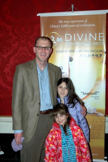 Jason Lewis, Représentant de l’état du Massachusetts avec ses filles à la DPA à Boston (La Grande Époque)