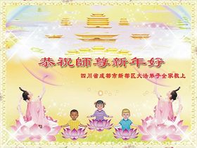 Les pratiquants du district de Xindu, ville de Chengdu, province du Sichuan souhaitent respectueusement au vénérable Maître une Bonne nouvelle année chinoise!
