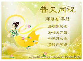 Les pratiquants de Weifang souhaitent respectueusement au vénérable Maître un bon Nouvel An Chinois !