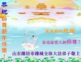 Tous les pratiquants de Falun Dafa de Zhucheng souhaitent au grand Maître une Bonne et Heureuse Année !