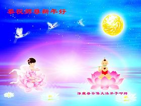 L'année 2009 arrive. Tous les pratiquants de la ville de Dengta, province du Liaoning souhaitent respectueusement au grand et compatissant Maître une Bonne et heureuse Année! Maître, en regardant en arrière, sous votre direction, nous sommes passés à travers les temps difficiles de la cultivation personnelle et de la rectification par la Loi. Chaque fois, nous nous sommes améliorés, tout imprégnés de vos efforts. Toutes nos améliorations et nos expériences sont réalisées avec l'aide bienveillante de vos efforts et la lumière de Dafa. Aujourd'hui, dans cette phase finale de la période de la rectification par la Loi, sans précédent dans l'univers, nous allons suivre de près le Maître et le processus de la rectification par la Loi, chérir chaque minute que le Maître a prolongé pour nous, nous efforcer d'être dignes du salut bienfaisant du Maître en faisant avec diligence les trois choses, et passer nos tests avec des réponses satisfaisantes ! Merci encore, Maître compatissant!