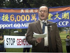 John Kusumi, le fondateur du Réseau d’appui de la Chine, a dit qu’il avait participé à un rassemblement similaire en 2005 pour soutenir un million de retraits du Parti. Maintenant le nombre a grimpé à 61 millions. Il a dit : «Nous avons entendu les voix du cœur du peuple chinois et nous admirons leurs courage.» Monsieur Kusumi a dit que de nombreux Chinois souffrent encore, mais il est confiant que la Chine puisse avoir un meilleur avenir.