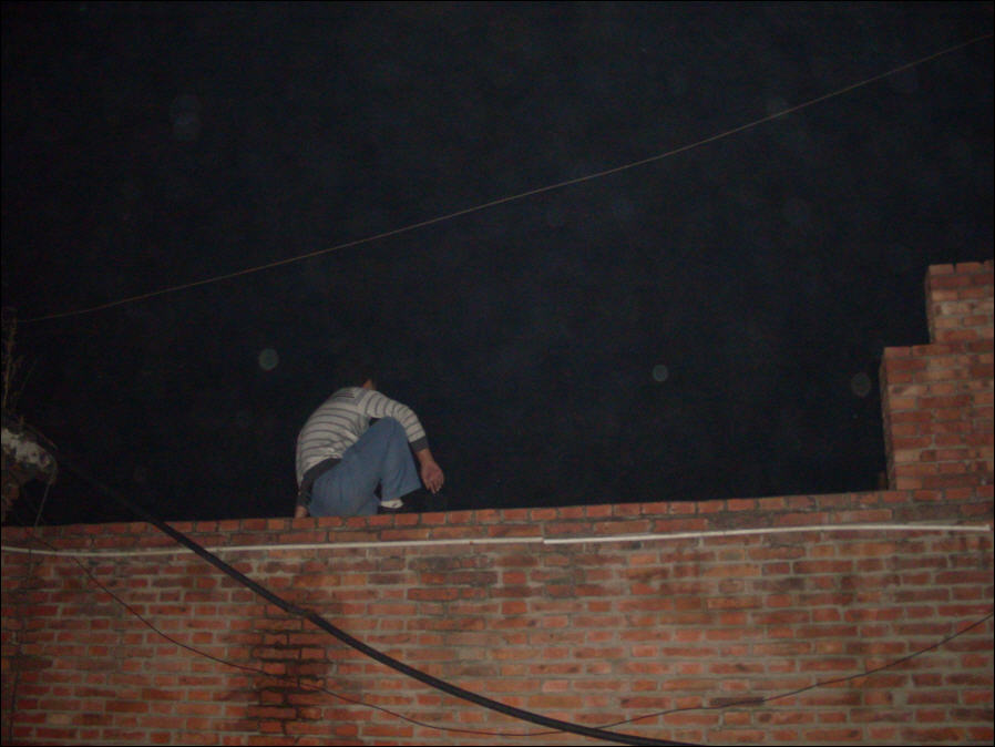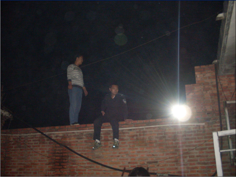 Lorsque les filles (Xiaojing, Xiaoyan, and Xiaojiao) ont refusé d'ouvrir la grille à l'entrée, plusieurs agents ont frappé maintes fois à la porte tandis que d'autres agents ont grimpé le mur devant et les ont menacées. Quand les filles ont crié à l'aide à leurs voisins, les agents sont descendus du mur et sont partis.